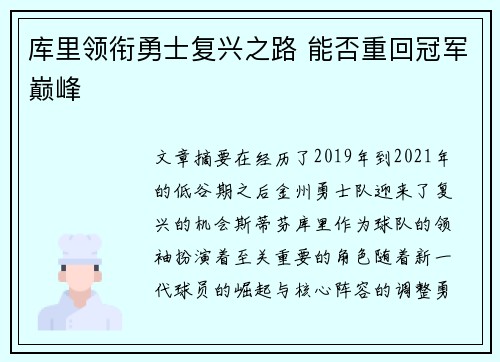 文章摘要:杜普兰蒂斯(Armand Duplantis)作为世界级的撑竿跳高选手,不仅凭借出色的运动成绩成为全球焦点,更以其坚韧不拔的精神和卓越的体育表现,成为了许多运动员,尤其是足球运动员的榜样。本文通过分析杜普兰蒂斯休赛期的自我激励和表现,探讨其如何激发足球界新赛季奋勇前行的动力。通过四个方面的...